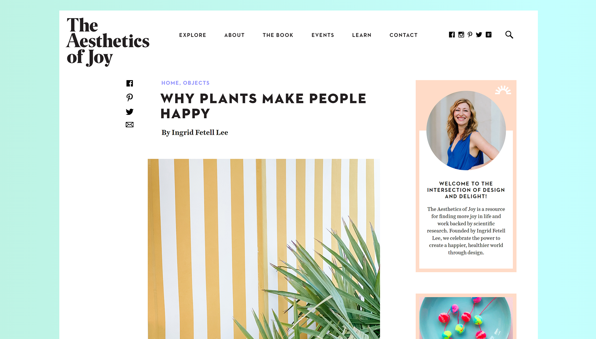 As Design Research Intern at The Aesthetics of Joy, I provide research and writing contributions for blog posts about science-backed and design-inspired ways to find more joy.